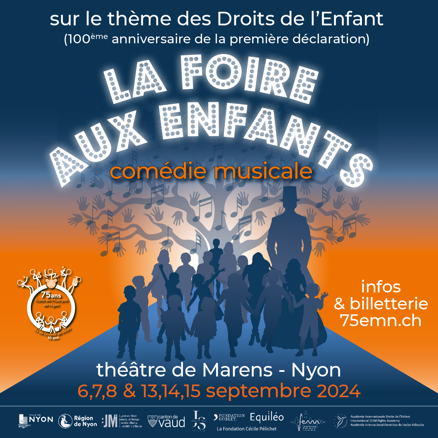 Spectacle anniversaire pour les 10 ans de L’As de Choeur et les 75 ans de l’Ecole de musique de Nyon. 6 représentations en septembre 2024 au Théâtre de Nyon Marrens.