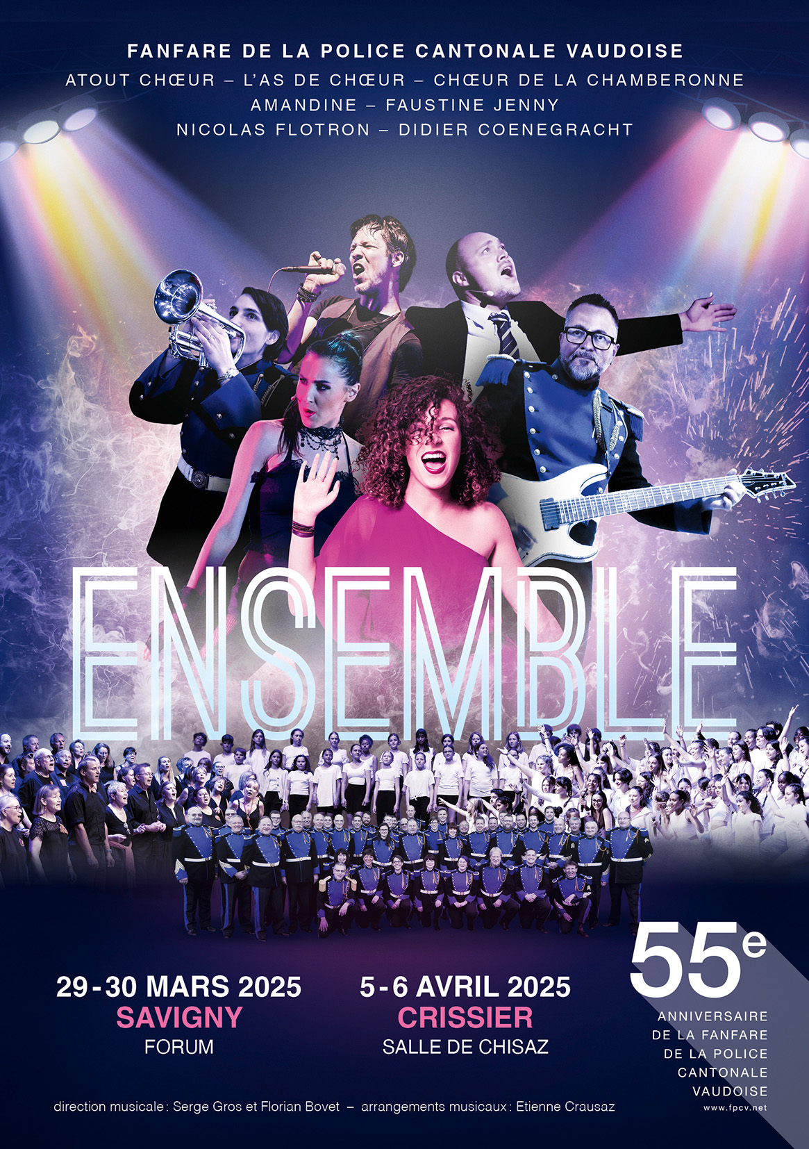 Près de 200 artistes sur scène pour 5 spectacles extraordinaires les 29 et 30 mars 2025 au Forum de Savigny et les 4, 5 et 6 avril 2025 à la Chisaz à Crissier.